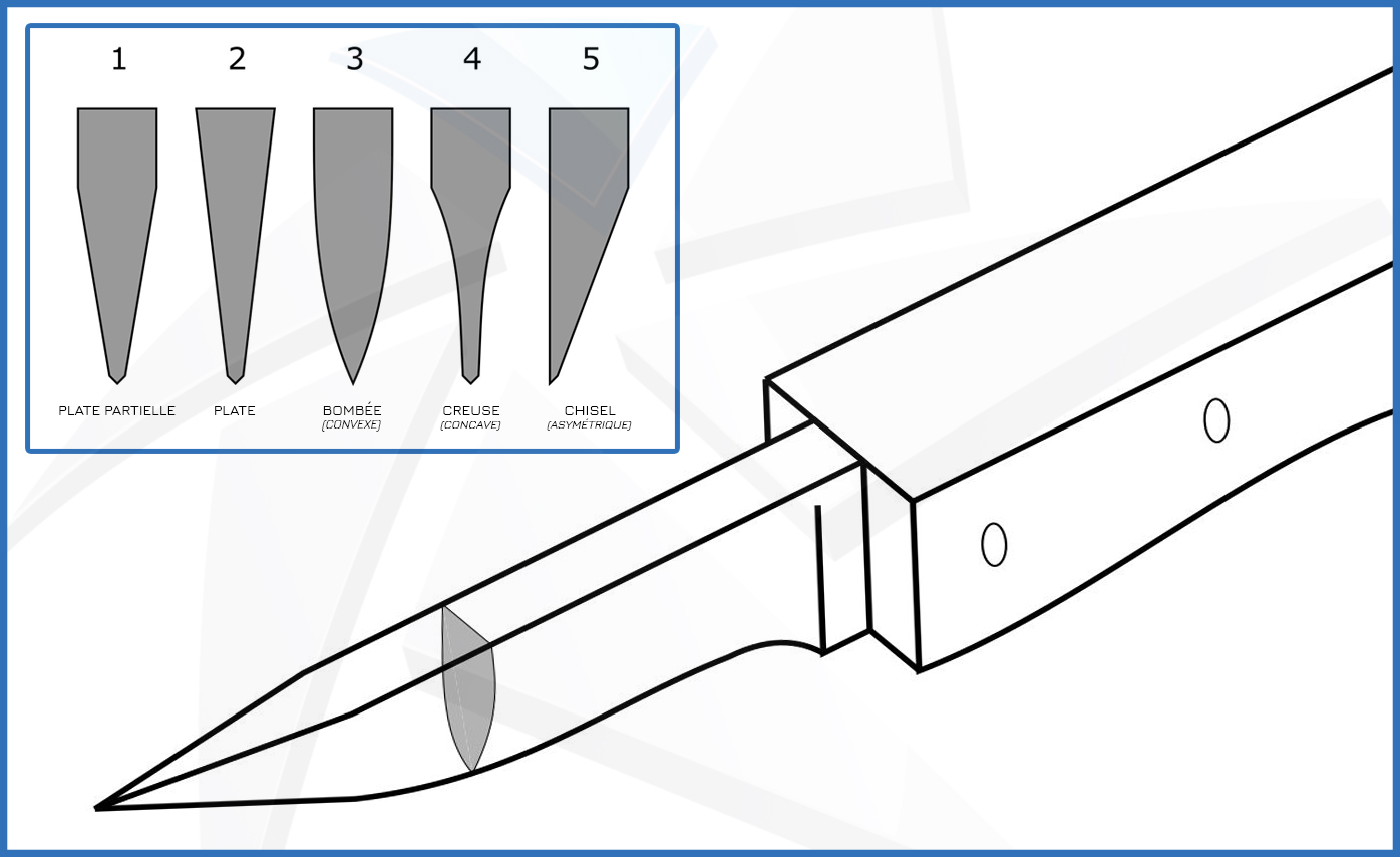 L'émouture : faire l’émouture, c’est former le tranchant en créant un biseau.