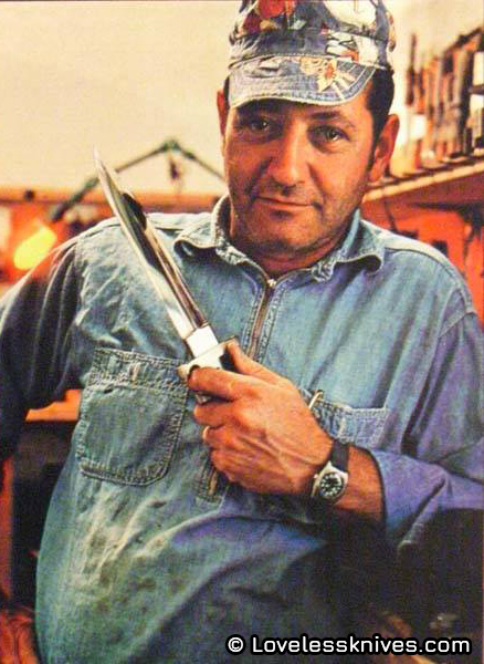 Mais qui est celui que l'histoire surnomme affectueusement "Bob" ? Né en 1929 et décédé et 2010, Bob Loveless était un coutelier américain, dont le palmarès compte de nombreux hauts-faits. La légende raconte que, alors mineur, il avait modifié son acte de naissance afin de pouvoir rejoindre la Marine Marchande. Ses nombreux voyages le menèrent dans des bars du monde entier, plus ou moins bien famés, dans lesquels il aurait assisté à nombre de combats à l'arme blanche - de ces coups d’éclat lui viendrait son intérêt pour la coutellerie, sous toutes ses formes. Fabriquant des couteaux "Delaware Maid" pour la société Abercrombie & Fitch, restés longtemps parmi les meilleurs ventes de la marque, co-fondateur de la Knifemakers' Guild (la guilde des couteliers) aux côtés de Blackie Collins et John Nelson Cooper, sa soif d'innovation en matière de forge et de fabrication le pousse tour à tour, à introduire l'utilisation du micarta pour la confection des manches de couteaux, mais également à populariser les lames drop point à émouture creuse et les couteaux pleine soie évidée. L'histoire le retiendra également pour avoir introduit, et popularisé, l'usage de l'acier qui nous intéresse aujourd'hui en coutellerie.